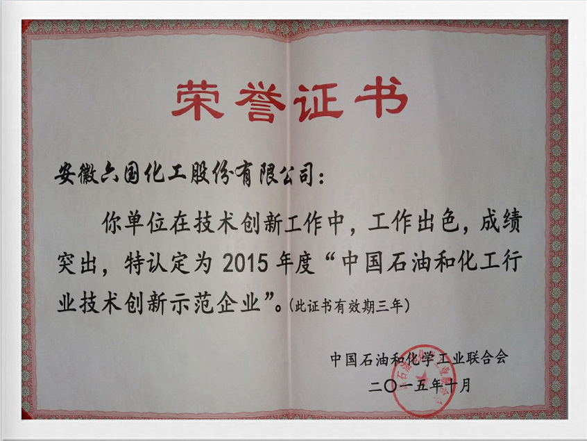 中國石化行業技術創新示范企業證書2018年
