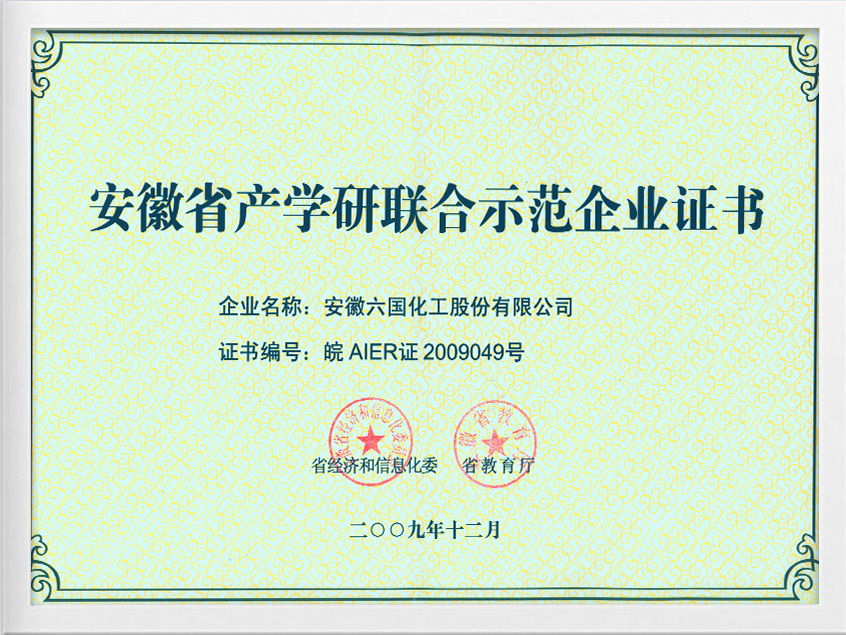 安徽省產學研聯合示范企業證書